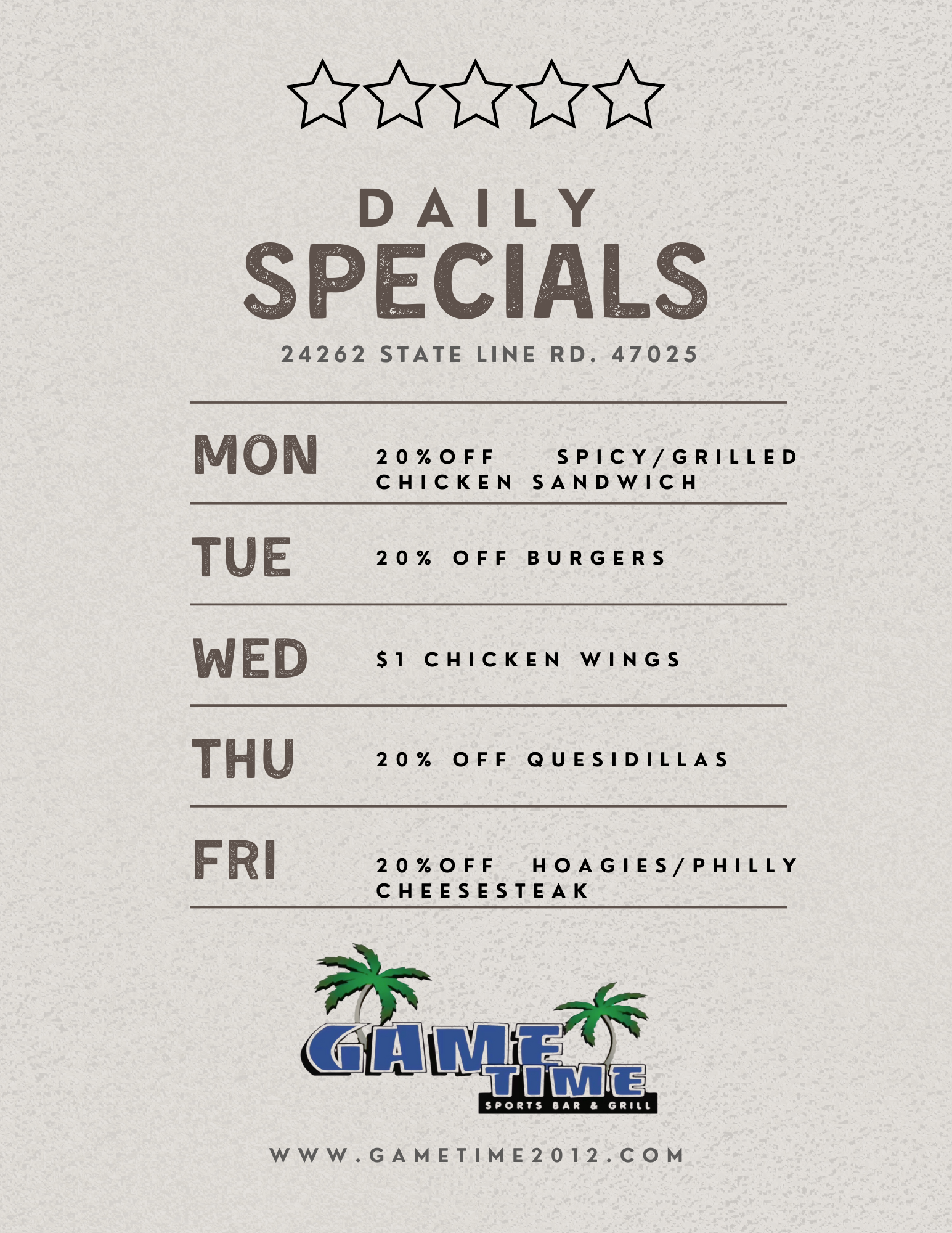 GAME TIME MENUS Newport Menu Items Bright Menu Items Newport: (859) 261-1450 Bright: (930) 234-2002